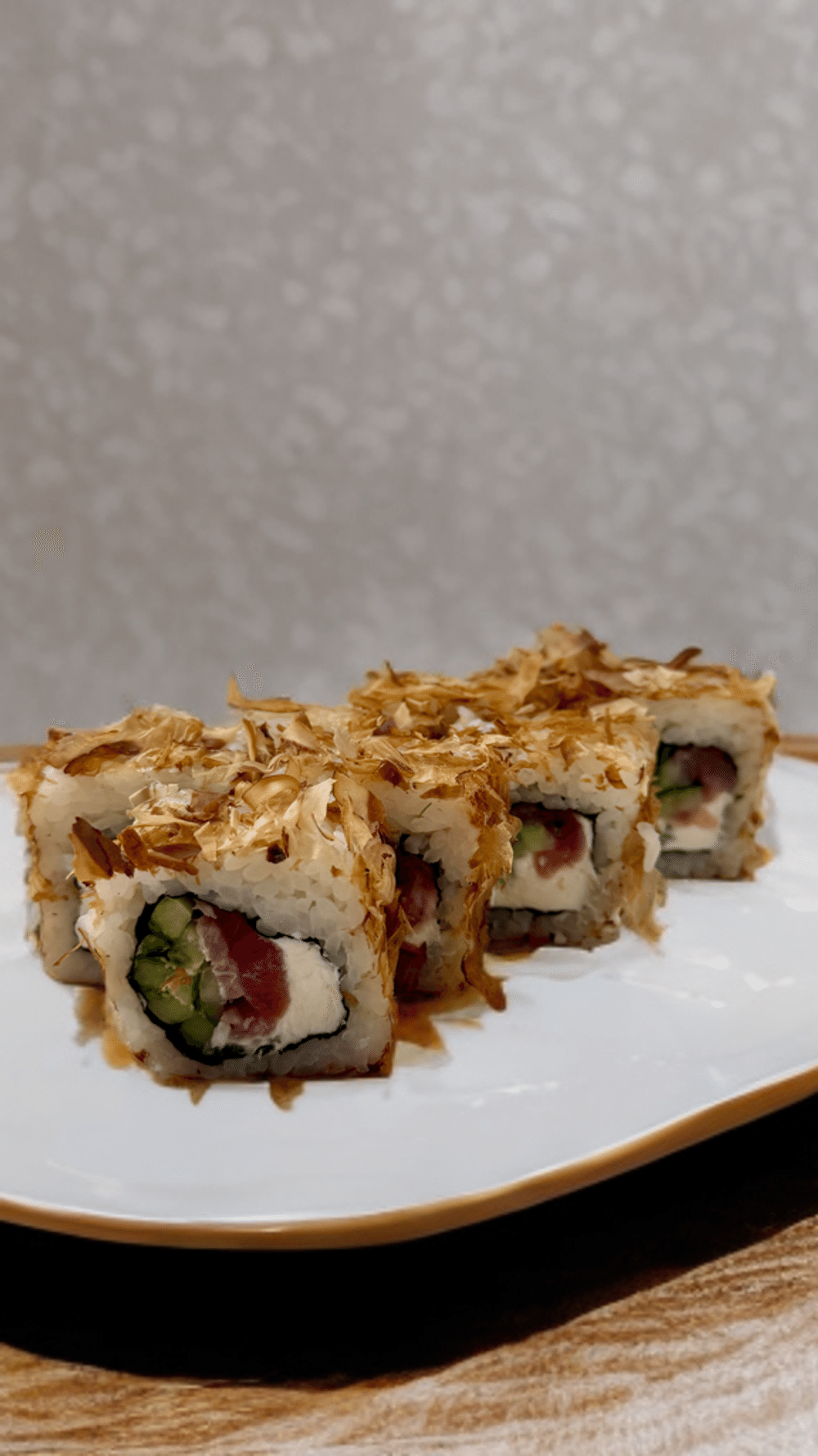 Рис,нори,огурец,сыр,тунец,стружка тунца
